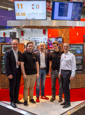 Das hochauflösende LED-Display der tennagels Medientechnik integriert sich optisch in die markante Barcode-Fassade des modernen Gebäudes und erzielt mit einer Bildgröße von über 12 x 7 Metern und einem Pixelpitch von 25mm die gewünschte Fernwirkung. Der Info-Screen setzt sich aus insgesamt 126 „LED- Kabinetten“ in Breiten von 1 Meter bis 1,75 Meter und einer Höhe von jeweils 0,5 Metern zusammen und kann auch ein digitales Videosignal wiedergeben. Mit einer Helligkeit von 8000nits (cd/m2) ist die Bildwiedergabe jederzeit lesbar – auch im Sonnenlicht.